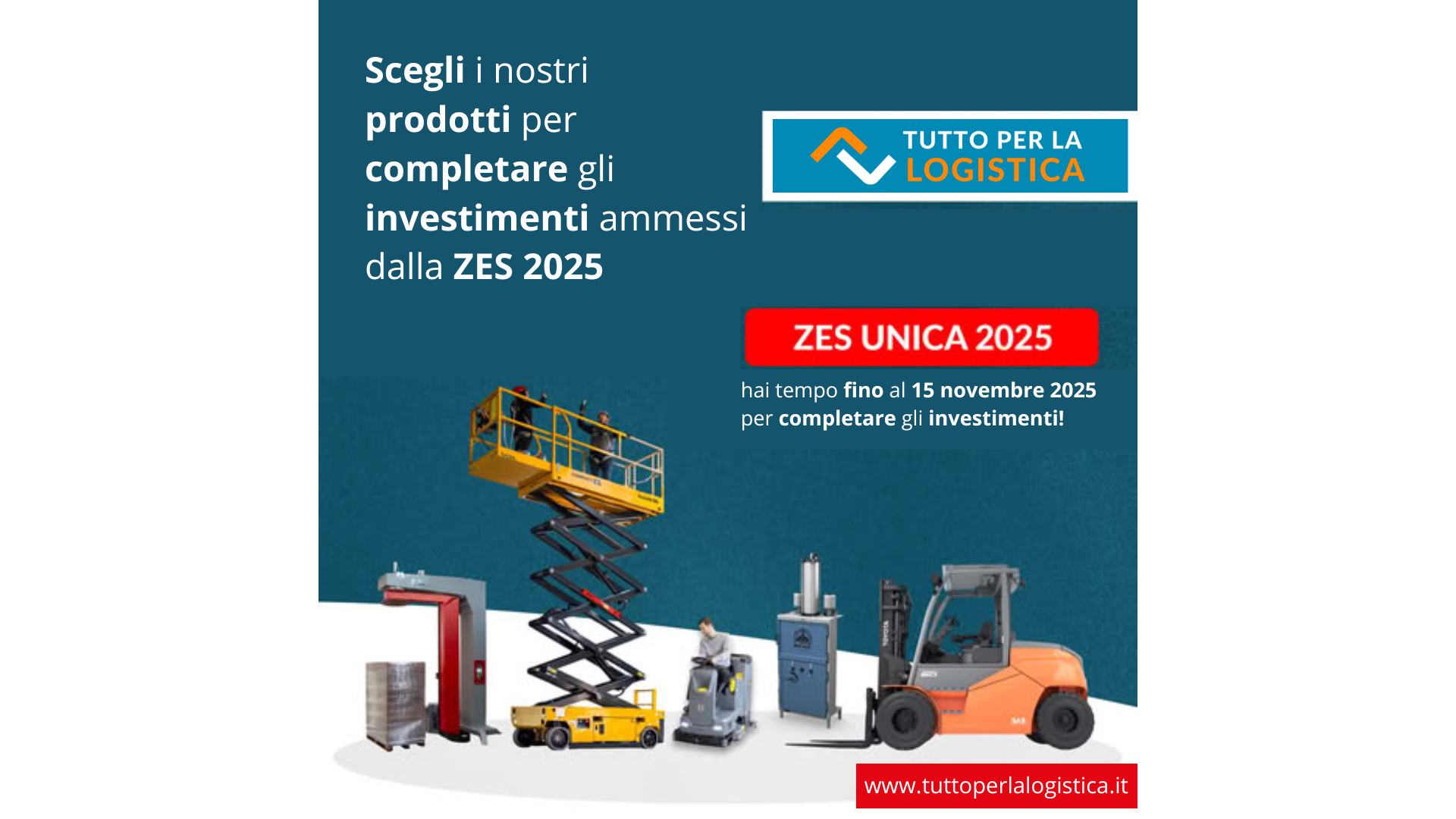 Con tuttoperlalogistica.it puoi trovare carrelli elevatori, macchine per la pulizia industriale, piattaforme aeree, avvolgitori fasciapallet, presse per cartoni e rifiuti, robot autonomi professionali e portoni industriali per capannoni già disponibili, evitando ritardi e mettendo in sicurezza il tuo investimento.