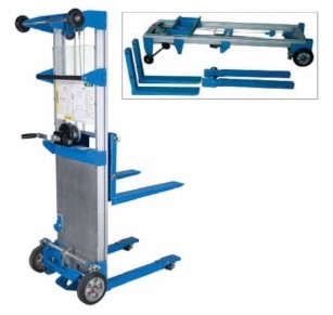 portata 225 kg ed elevazione con vericello 1250 mm, forche 570x530mm, con rulli in cima al montante per facilitarne il trasporto