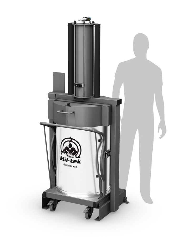 Il compattatore di rifiuti in acciaio inox Mil-tek X-Press 200S è estremamente flessibile e adatto a un’ampia varietà di luoghi, tra cui cucine, siti di preparazione degli alimenti, ospedali, uffici e aree di smaltimento dei rifiuti generici.