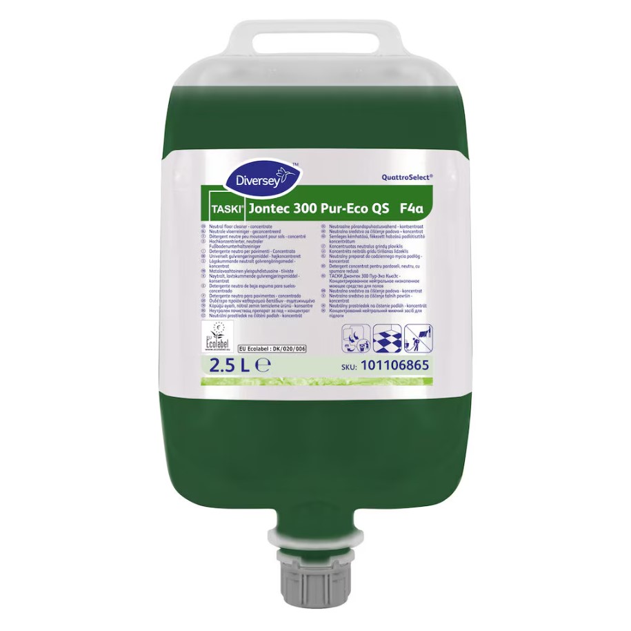 The product can only be used through the QuattroSelect dilution unit, which guarantees 100% cost control and safety. The QuattroSelect unit dispenses high flow (bucket application) and low flow (spray application) dosages.
